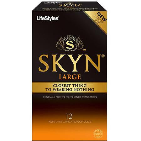 El Lifestyles SKYN Large (grande) es el primer condón Premium hecho de poliisopreno con medidas mayores a las de los condones normales. El Poliisopreno es un material sin látex científicamente formulado que proporciona mayor sensibilidad, proporciona una sensación más suave, más natural que el látex, la combinación de la fuerza de látex con la sensibilidad de un condón más delgado. Ideal para personas con alergias al látex o sensibilidad al látex.